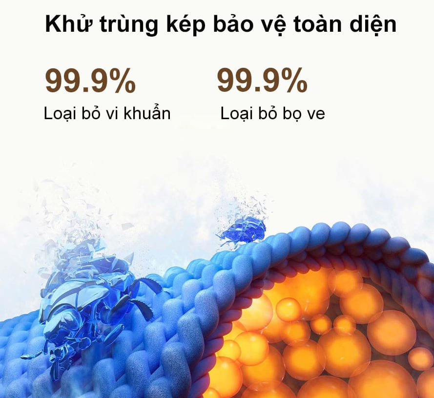 - Khử trùng hiệu quả 99,99% Sử dụng nước ở nhiệt độ cao trên 60°C để tiêu diệt vi khuẩn như Staphylococcus aureus và Escherichia coli, bảo vệ sức khỏe gia đình.