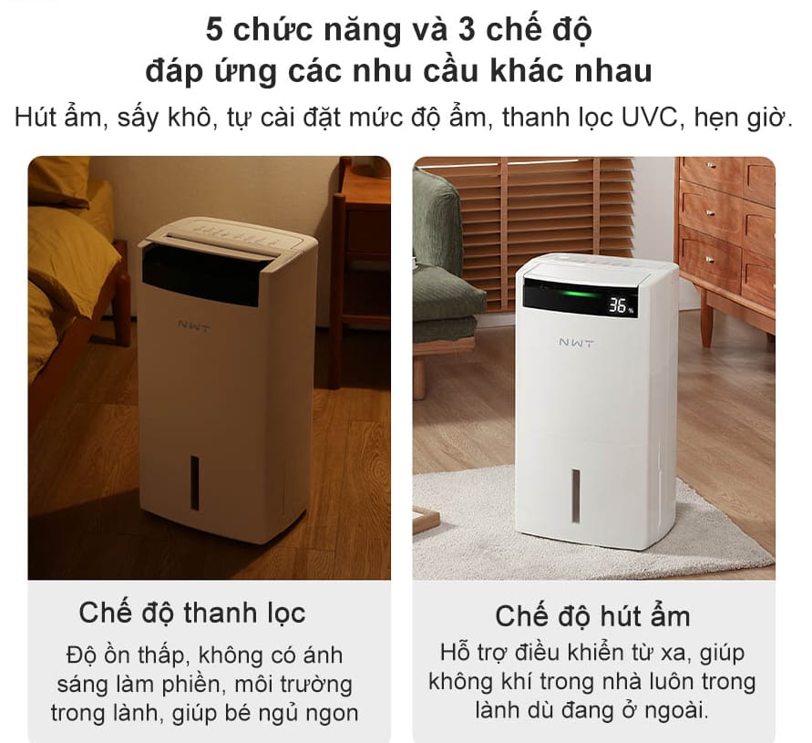 - Hoạt động êm ái: Độ ồn thấp, chỉ khoảng 36dB, không gây ảnh hưởng đến sinh hoạt hàng ngày.