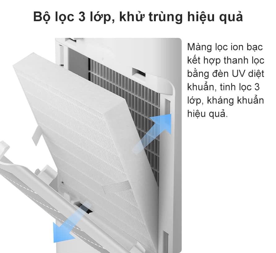 - Bộ lọc ion bạc kháng khuẩn: Ngăn chặn sự phát triển của vi khuẩn và nấm mốc trong không khí, mang lại môi trường sống trong lành và an toàn.