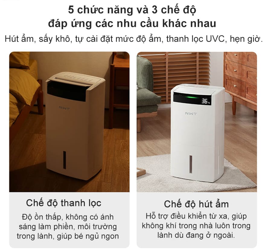 - Hoạt động êm ái: Độ ồn thấp, chỉ khoảng 36dB, không gây ảnh hưởng đến sinh hoạt hàng ngày.