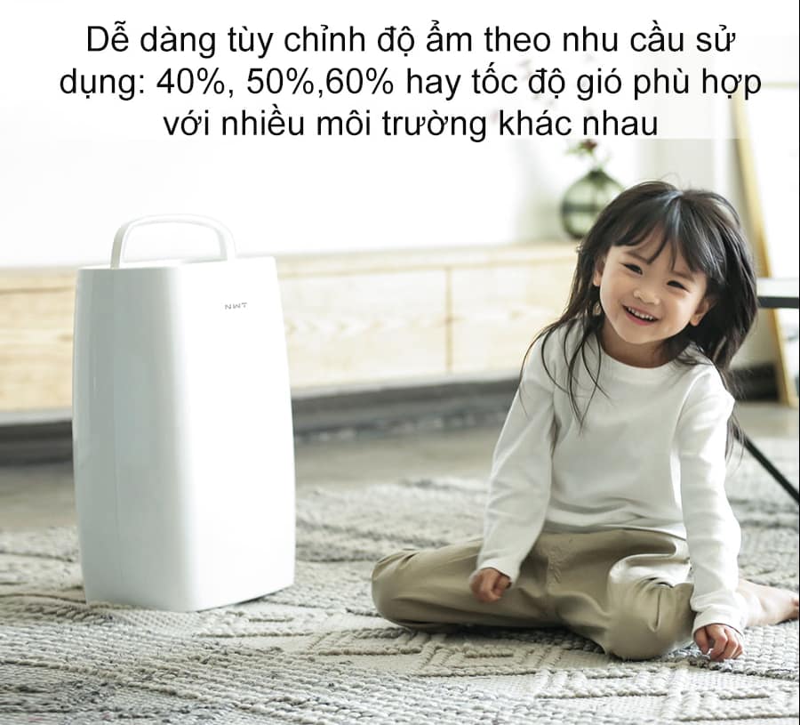 Máy hỗ trợ nhiều chế độ hoạt động, bao gồm chế độ hút ẩm liên tục, chế độ sấy quần áo và các chế độ tùy chỉnh độ ẩm (40%, 50%, 60%), cùng với 3 mức tốc độ gió (thấp, trung bình, cao), đáp ứng đa dạng nhu cầu sử dụng trong gia đình.