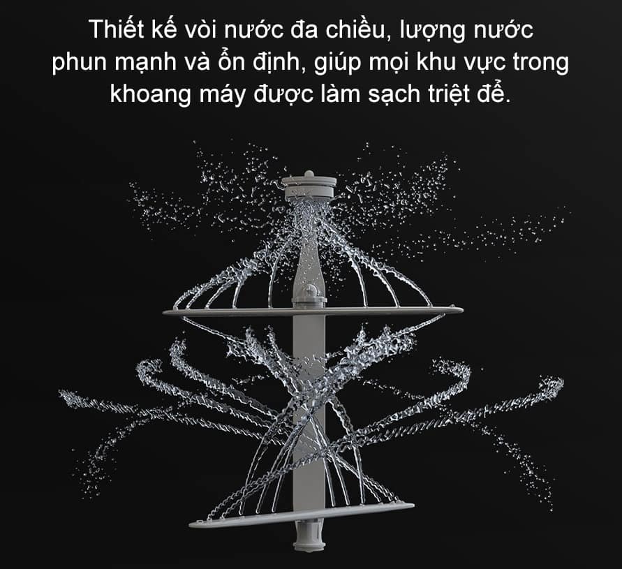 - Làm sạch toàn diện với vòi nước đa chiều: Hệ thống vòi phun đa chiều giúp mọi khu vực trong khoang máy đều được làm sạch hiệu quả, loại bỏ các vết bẩn cứng đầu.