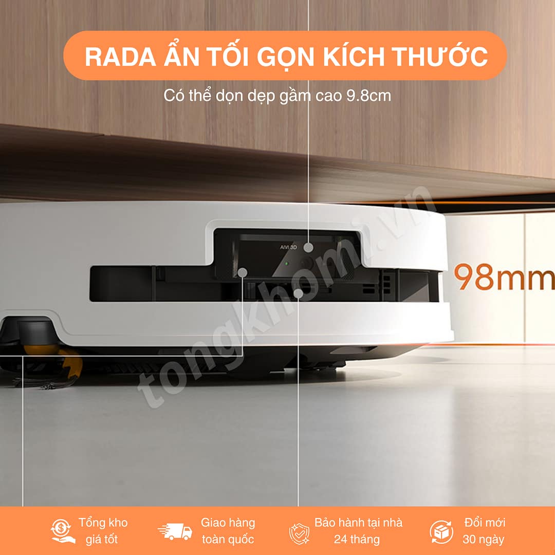 Khác với các dòng tiền nhiệm, rada của em T80 Omni này được thiết kế ẩn. Tổng chiều cao chỉ 98mm (9.8cm), dễ dàng lau dọn các gầm thấp trong nhà.