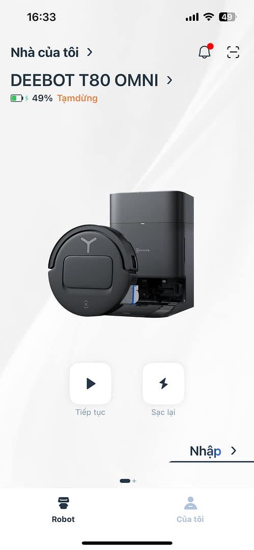 Với các dòng robot Ecovacs chính hãng, các bác có thể theo dõi và điều khiển robot qua app Ecovacs Home hoàn toàn bằng tiếng Việt. Có rất nhiều tính năng và cài đặt chu trình làm sạch của robot. Đặc biệt, T80 trang bị thêm camera tuần tra nhà cửa giúp các bác quan sát nhà qua camera góc rộng của robot.