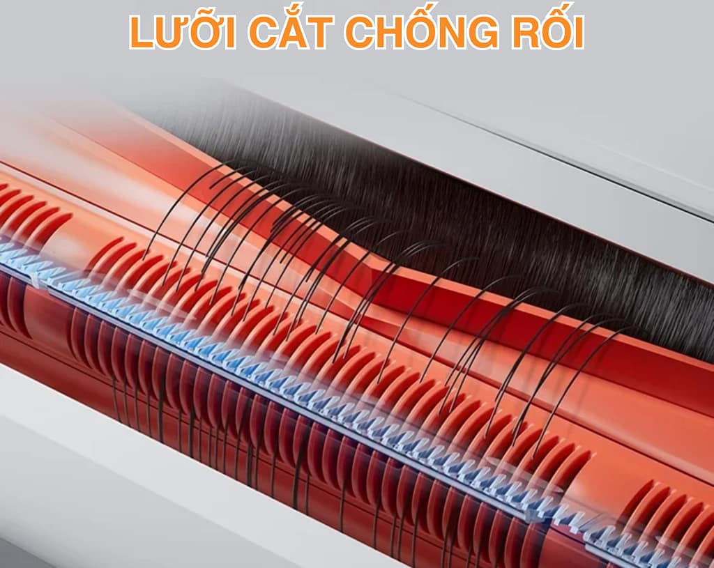 - Chổi chính có lưỡi cắt chống rối cực kỳ hiệu quả