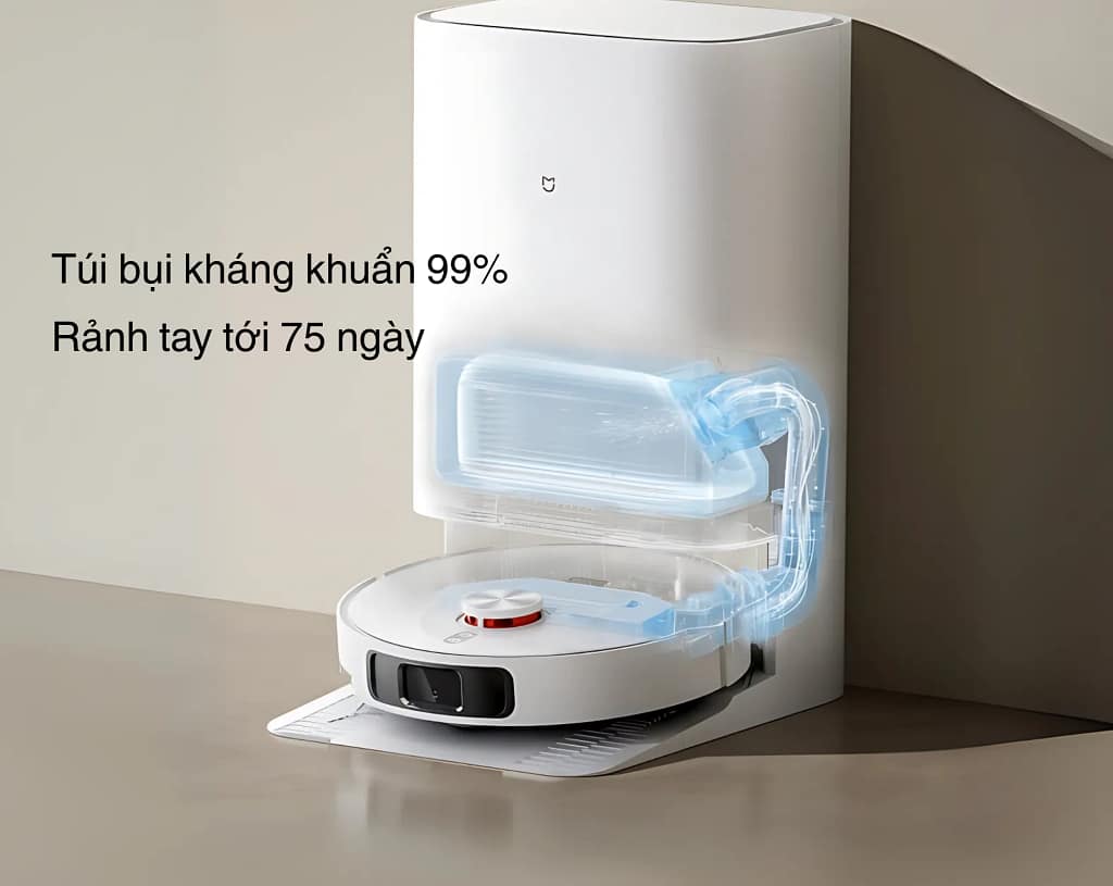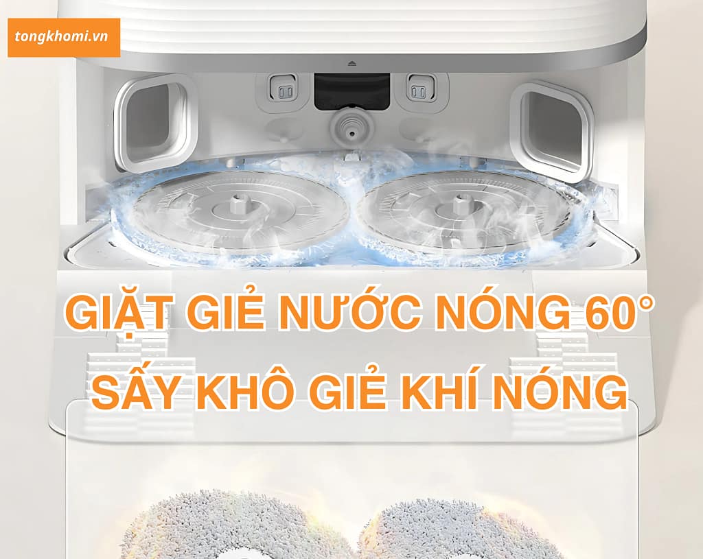 - Dock sạc toàn năng: giặt – sấy giẻ, tự gom bụi