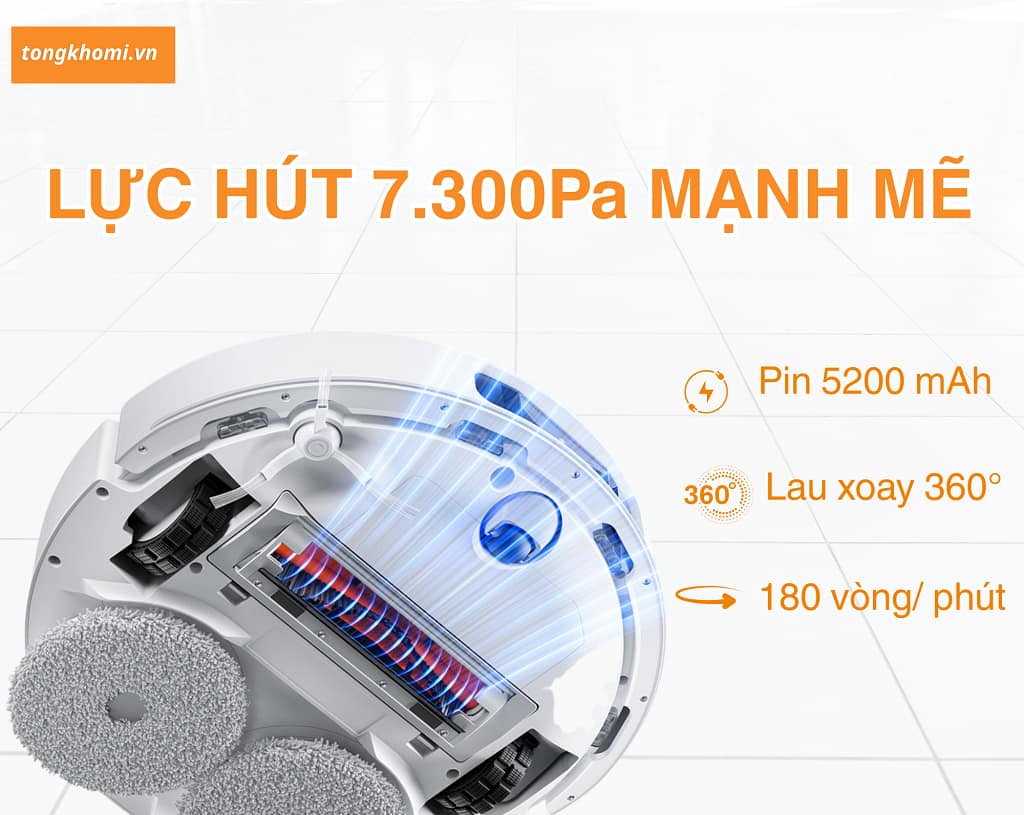 - Lực hút bụi 7300Pa, đủ để hút bụi trên thảm lông