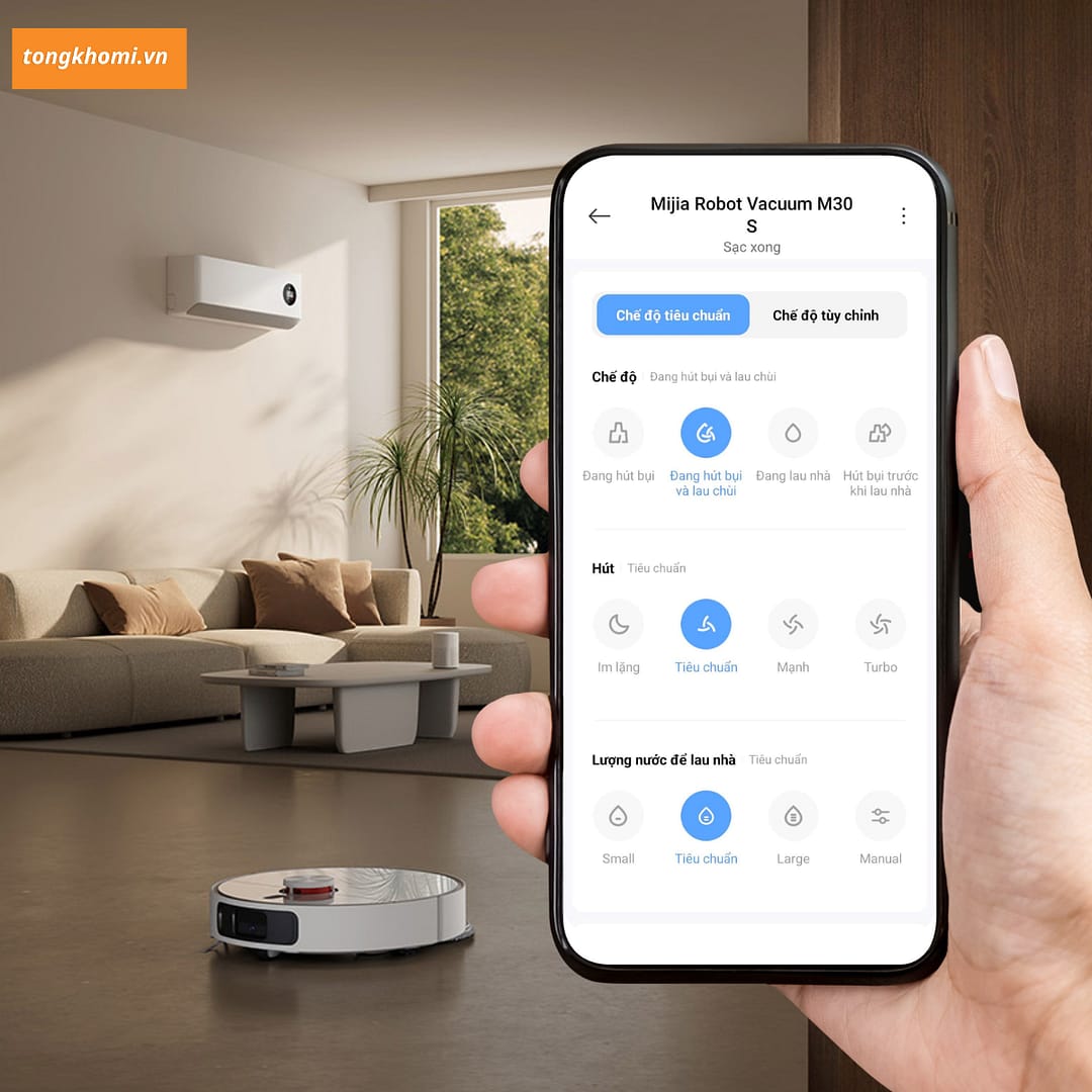 Vào ứng dụng Mi Home để lập lịch làm việc, chọn chế độ làm sạch, theo dõi tiến độ ở bất kỳ đâu các bác ạ.