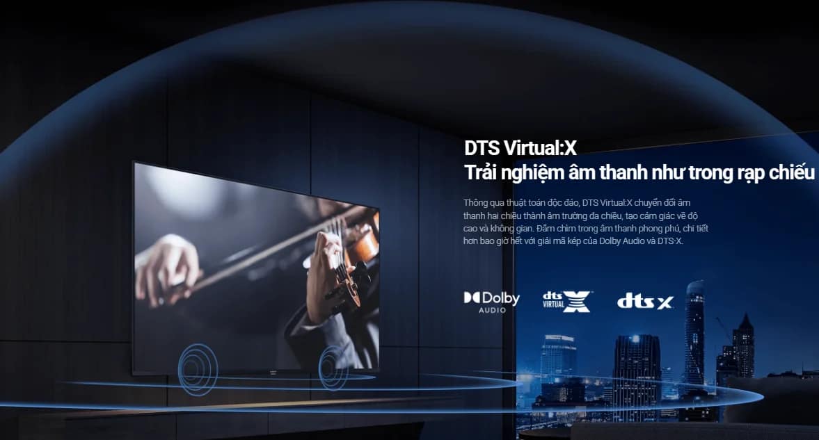 - Công nghệ DTS Virtual:X: trải nghiệm âm thanh vòm 3 chiều như trong rạp chiếu phim