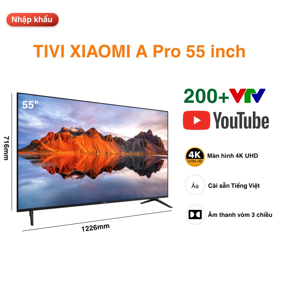 Với bản nhập khẩu Tivi Xiaomi A Pro 55 inch, em Đức sẽ cài sẵn Tiếng Việt và hơn 200 kênh truyền hình, thể thao trực tuyến tặng các bác. Kèm theo Youtube không quảng cáo. Nên các bác không lo khó sử dụng hay không hiểu ngôn ngữ.