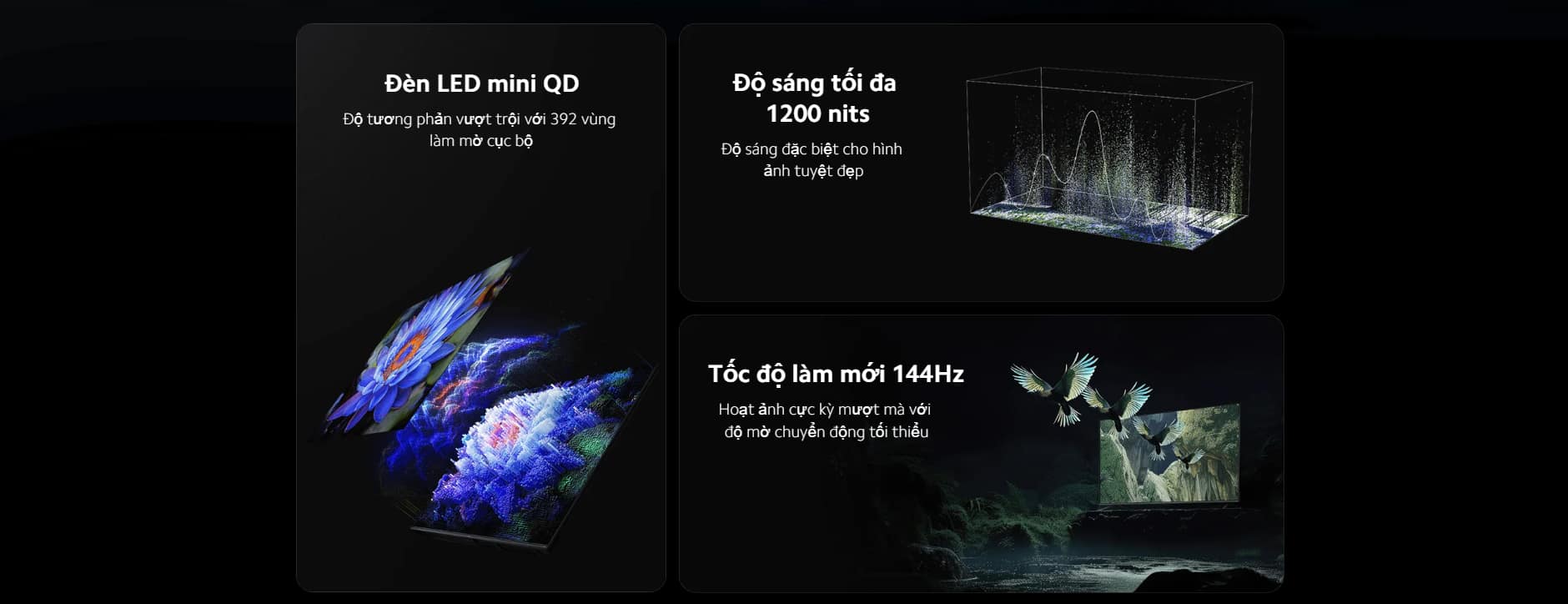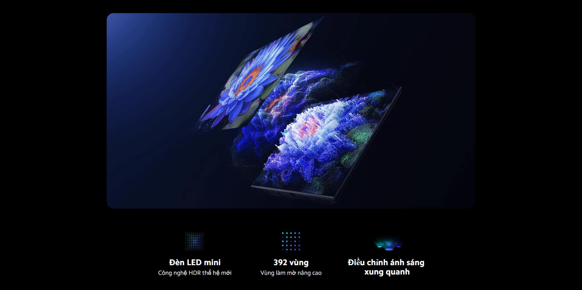 - Màn hình 75 inch 4K UHD với công nghệ MiniLED cho hình ảnh sắc nét có chiều sâu nhất cùng độ sáng màn cao tối đa