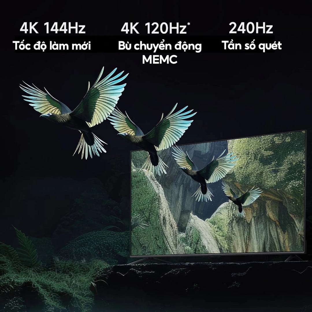 - Tần số quét 144Hz cùng công nghệ bù chuyển động MEMC giúp giảm thiểu hiện tượng nhòe hình, mang đến trải nghiệm xem cực kỳ mượt mà, phù hợp cho các bác xem thể thao hay phim hành động