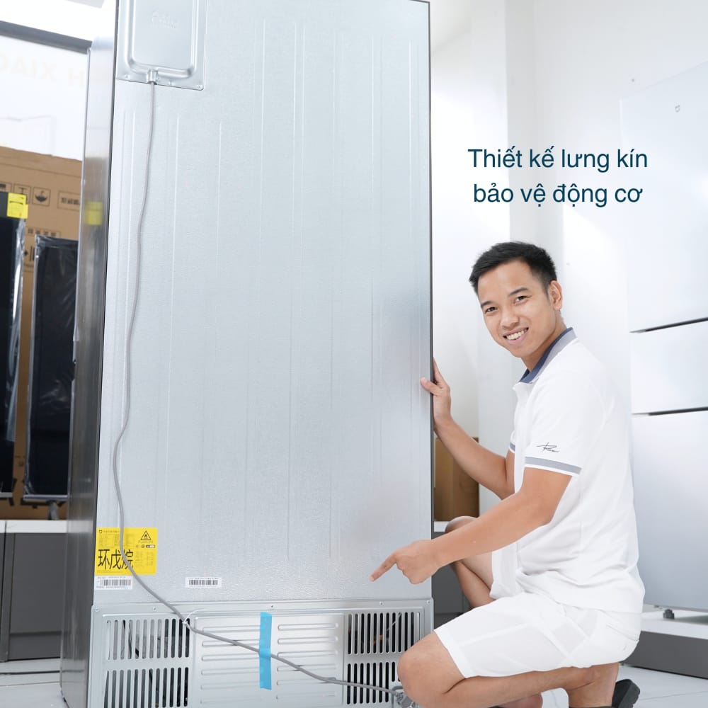 Riêng dòng tủ lạnh Xiaomi được thiết kế với mặt lưng kín hoàn toàn. Giúp ngăn chuột bọ chui vào làm hỏng hoặc kẹt bên trong gây mất vệ sinh. Đồng thời hạn chế tình trạng nồm ẩm ảnh hưởng đến động cơ.