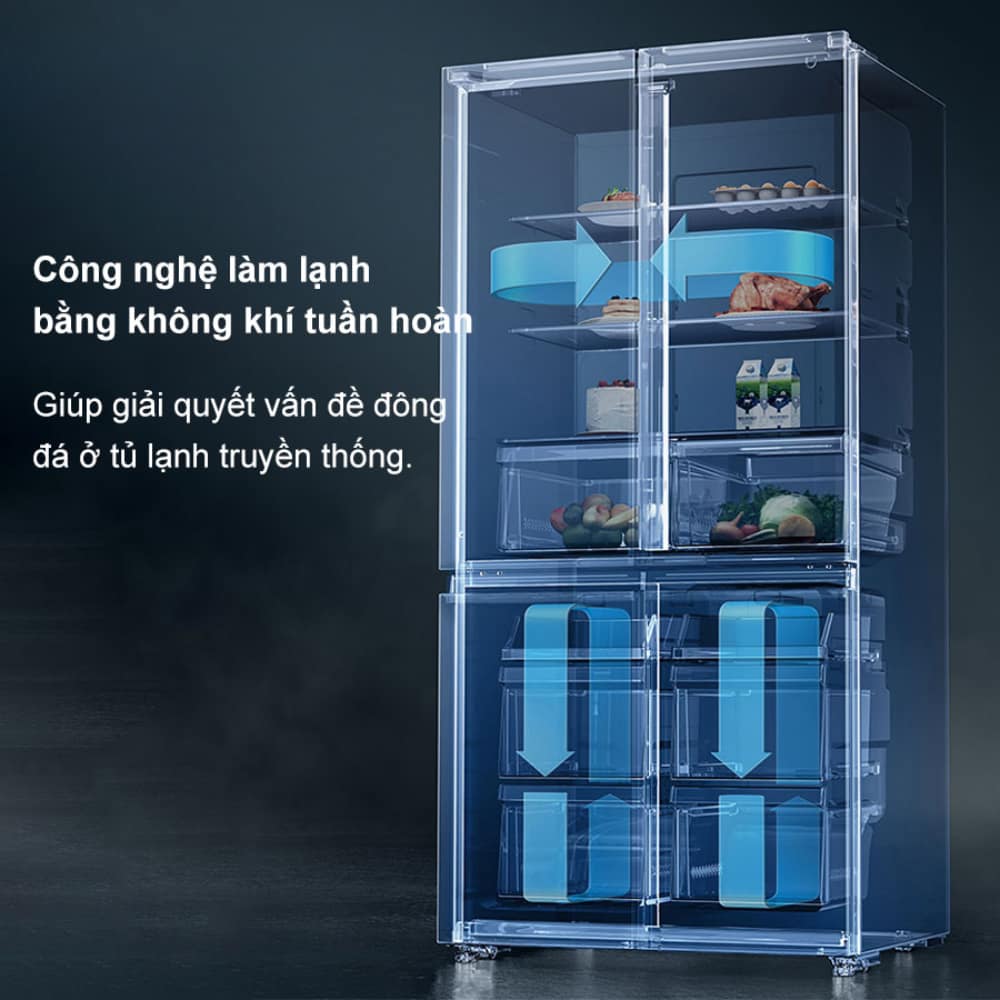 Tủ lạnh Xiaomi 4 cánh 606L làm lạnh với luồng khí 360 độ không đóng tuyết